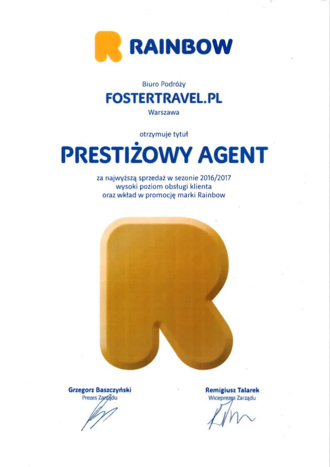 - Rainbow Tours – wyróżnienia za najwyższą jakość obsługi i wyjątkowe wyniki sprzedaży.